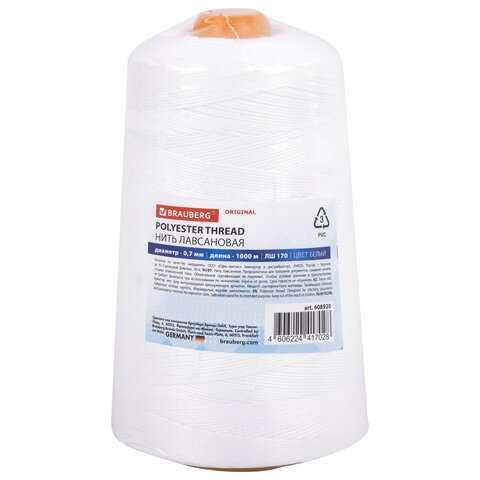 Купить канцтовары: Нить лавсановая для прошивки, БЕЛАЯ диаметр 0,7 мм, 1000 м, ЛШ 170, BRAUBERG ORIGINAL, 608920 в Витебске
